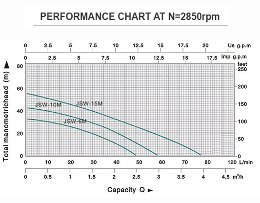 Max Flow:45L/min(JSW8M);50L/min(JSW10M);65L/min(JSW12M);80L/min(JSW15M)