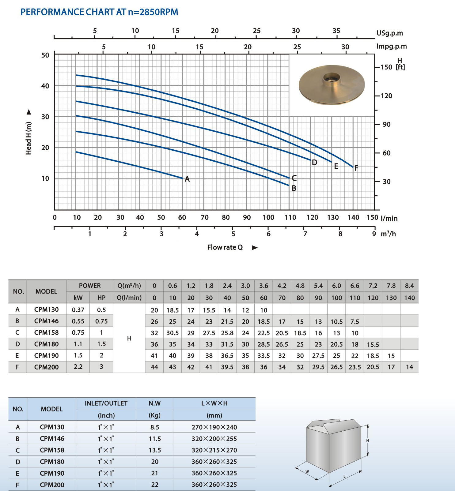 Single phase 220v/50hz.Brass impeller,carbon steel motor shaft,with thermal protector inside.Other model